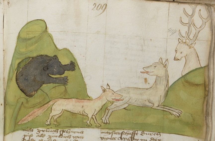 - (Herunterladen) Bär, Fuchs und Hirschkuh (MS 653, 209r).jpg . . 865 × 567 . . 118 KB . . Silvan Wagner . . 19:56, 19. Sep. 2021